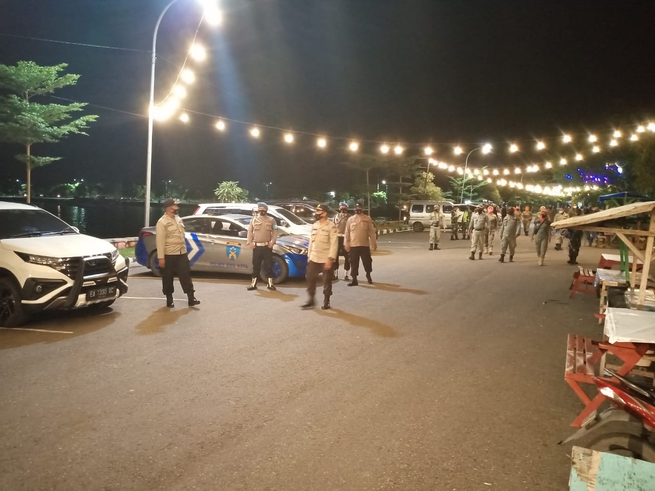 Kota Bima, (08/02)-Karena mulai diterapkan jam malam untuk mencegah penyebaran Covid-19 di wilayah Kota Bima, personil gabungan dari Polres Bima Kota, Kodim 1608 Bima dan Pol PP menyisir beberapa tempat keramaian, Sabtu (6/2) sekitar pukul 20.30 Wita
