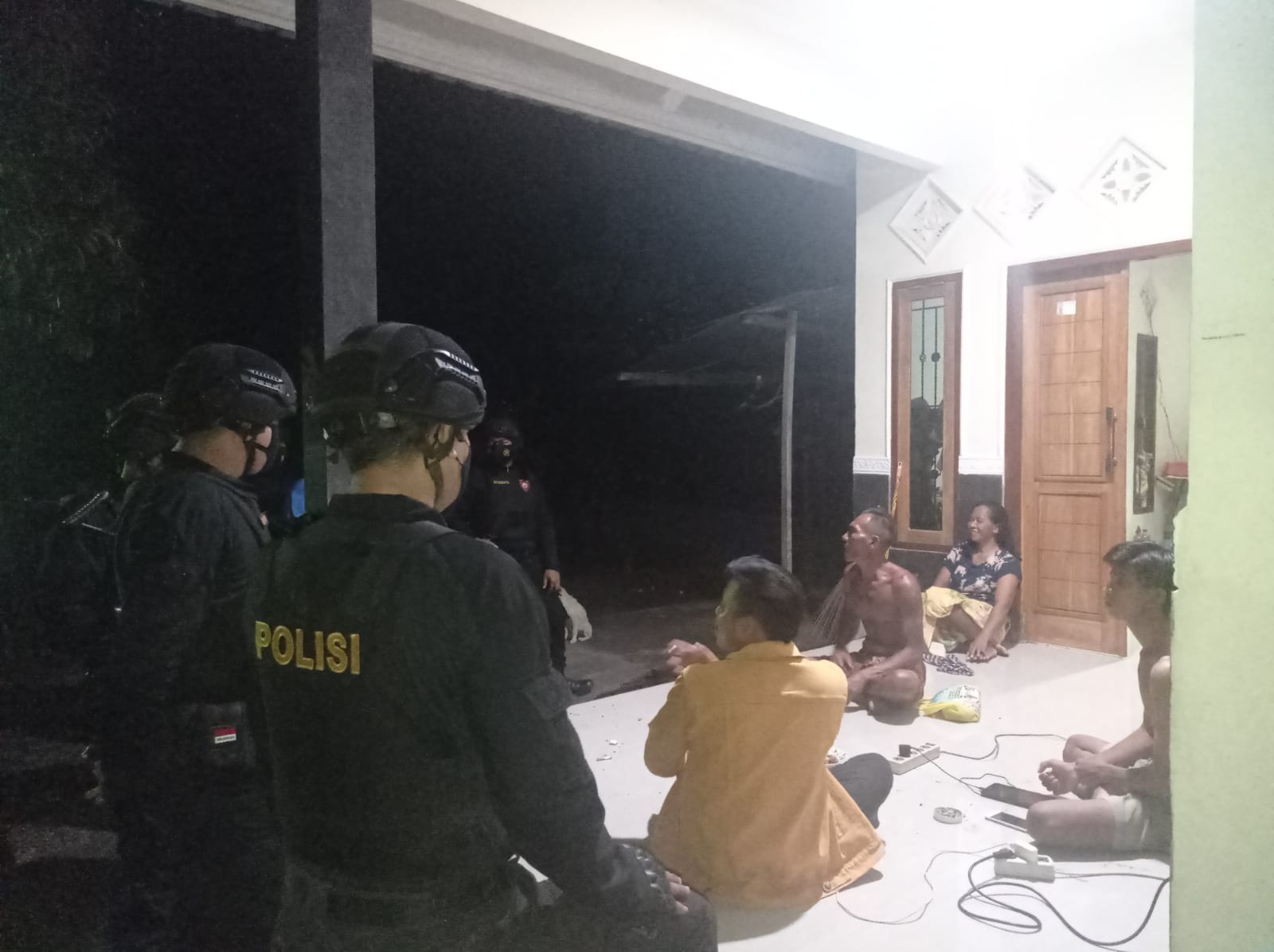 Kemudian menyisir di seputaran pertokoan di Desa Kediri Selatan, kecamatan Kediri, dan menemukan sekelompok anak muda yang masih nongkrong di dpn pertokoan.