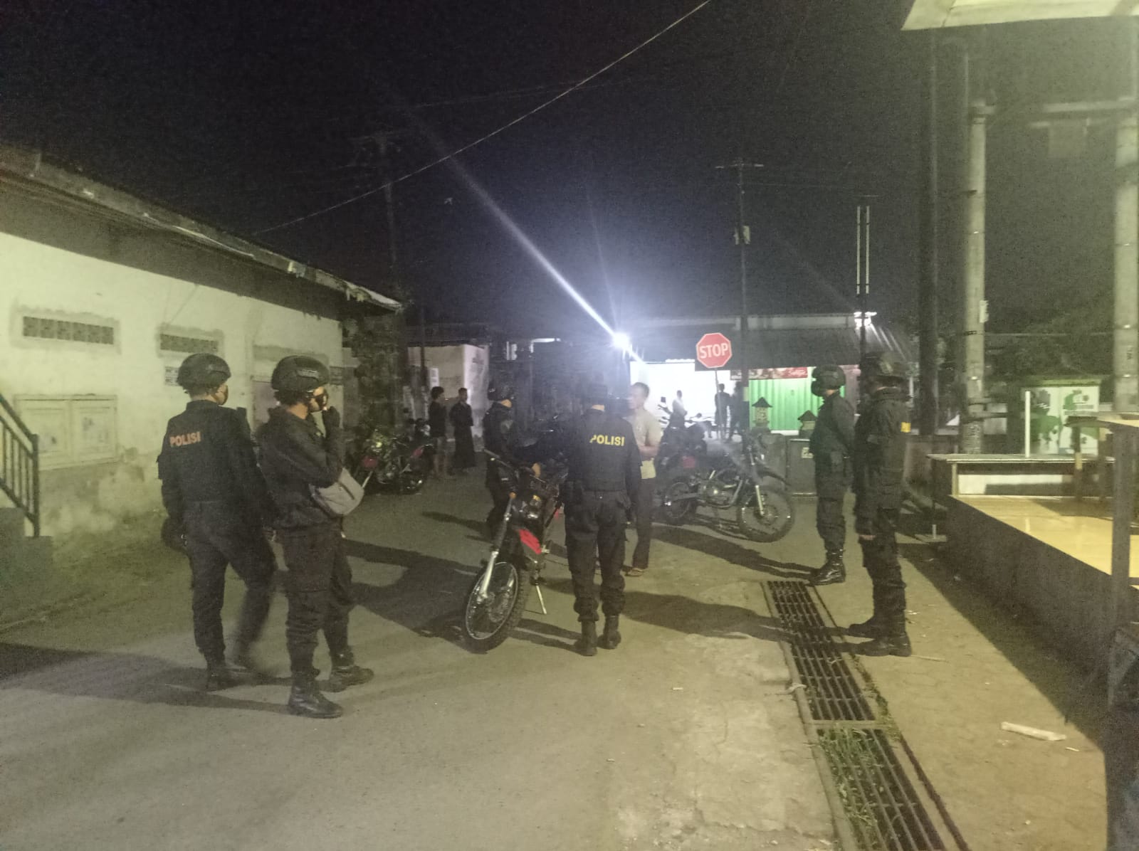 Kegiatan Patroli dilanjutkan di seputaran Desa Gelogor Kecamatan Kediri menyambangi Gudang Roti yang masih masih beraktifitas/ lembur hingga dini hari.