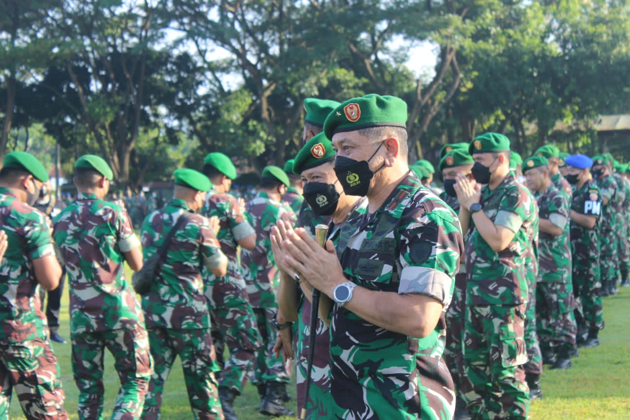 Mataram – Korem 162/WB beserta jajaran gelar Apel bersama dalam rangka Halal Bihalal Hari Raya Idul Fitri 1443 Hijriah, dimana apel dipimpin langsung Danrem 162/WB Brigjen TNI Lalu Rudy Irham Srigede S.T., M.S.i., dan Selaku Komandan Apel di Lapangan Trisula Yonif 742/SWY Jalan M.T. Haryono Kelurahan Sapta Marga Asrama Gebang, Kecamatan Cakranegara Kota Mataram Dandenmarem 162/WB Mayor Inf. Marsana, Selasa (10/05/22).