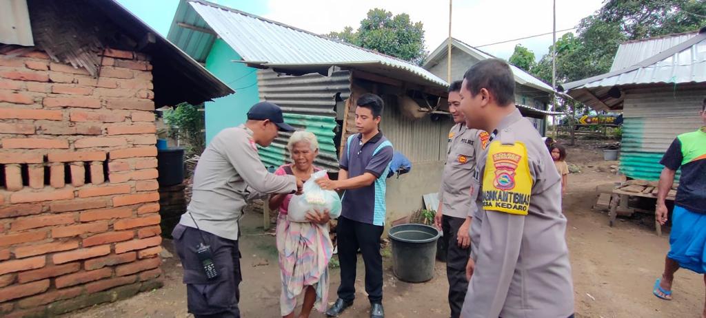 Kapolsek Sekotong memimpin langsung kegiatan Bakti Sosial pembagian sembako ini bersama Kanit Binmas Aiptu Supriadi Saputra dan Bhabinkamtibmas Desa Kedaro Aipda Mamad Firmansyah, mendampinginya.