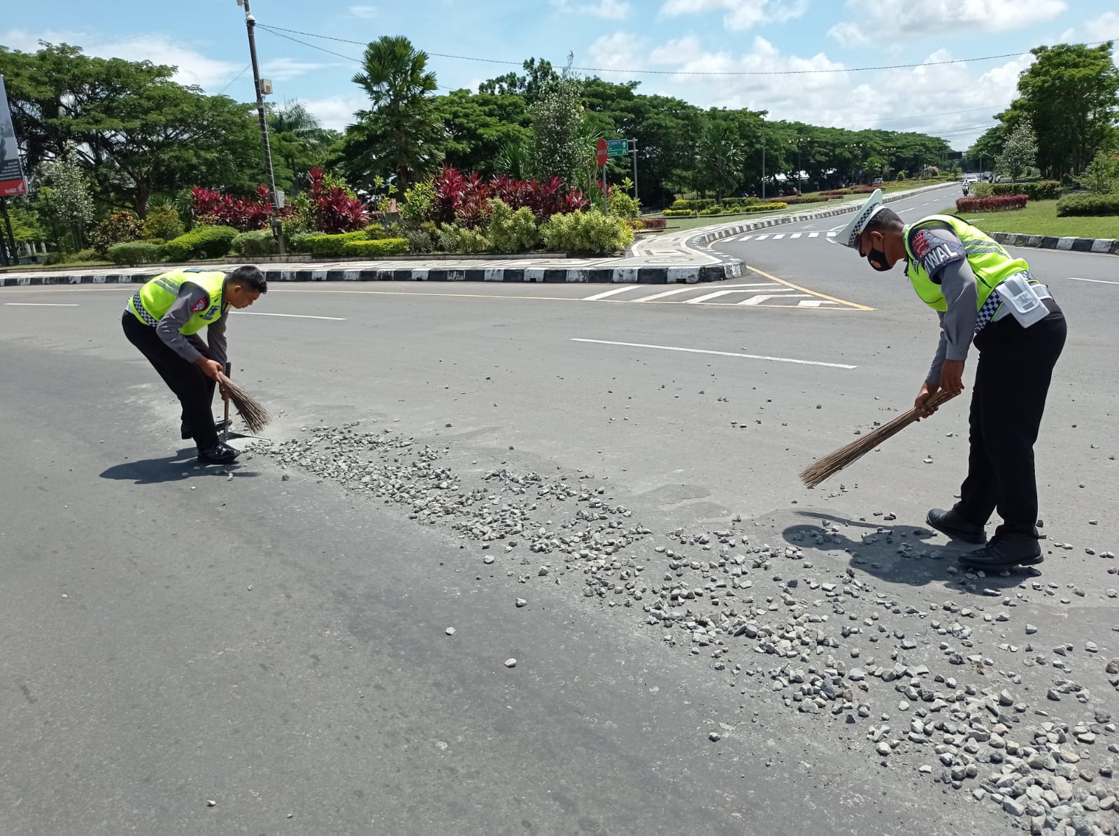 “Merupakan salah satu jalur yang cukup padat bagi pengendara yang melintas. Sehingga langsung melakukan pembersihan pada saat itu juga, yang mana tumpahan kerikil ini dapat mengakibatkan jalanan menjadi licin. Tentunya berpotensi besar mengakibatkan kecelakaan lalulintas, hingga dapat menimbulkan kepada fatalitas kecelakaan lalulintas,” pungkasnya.