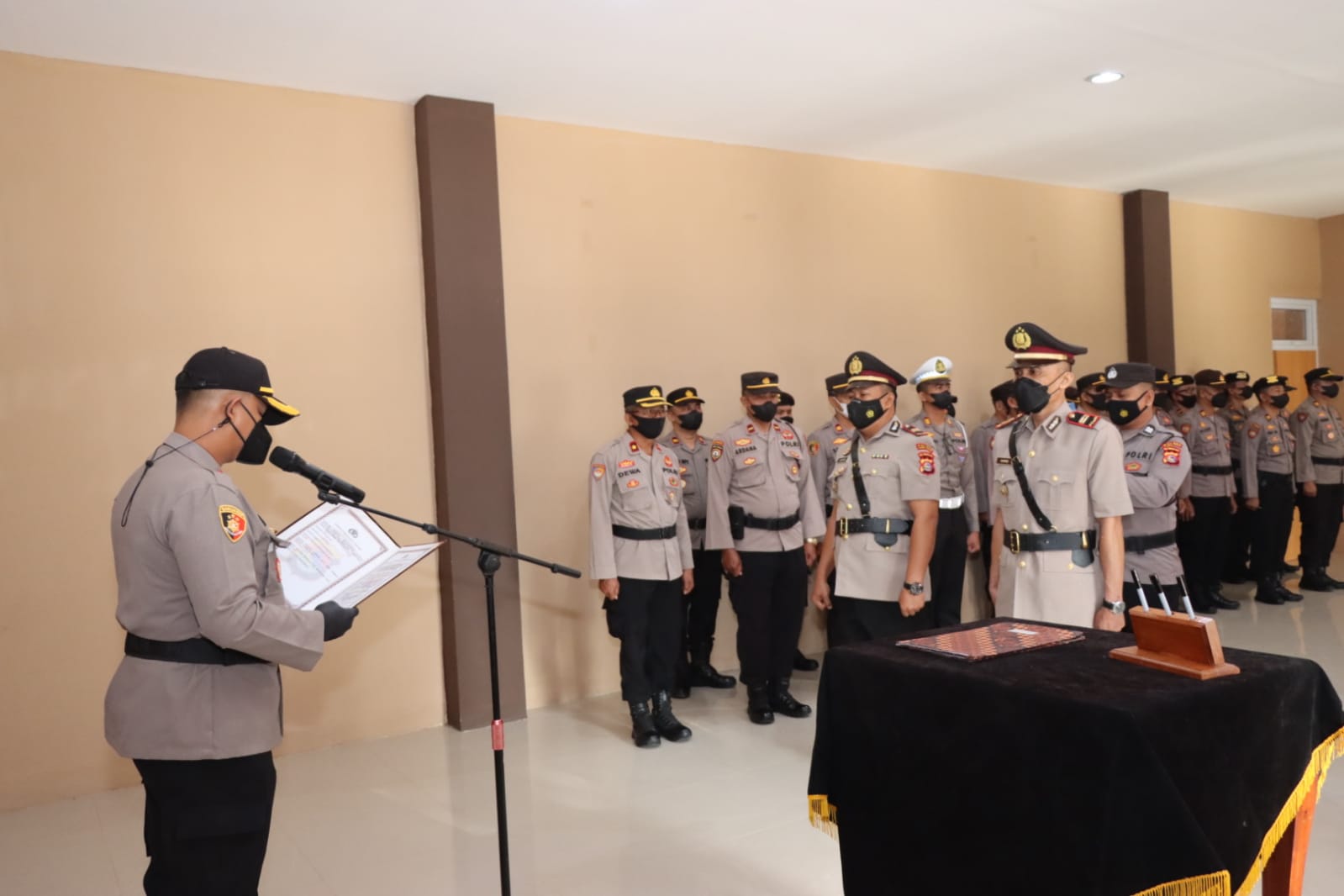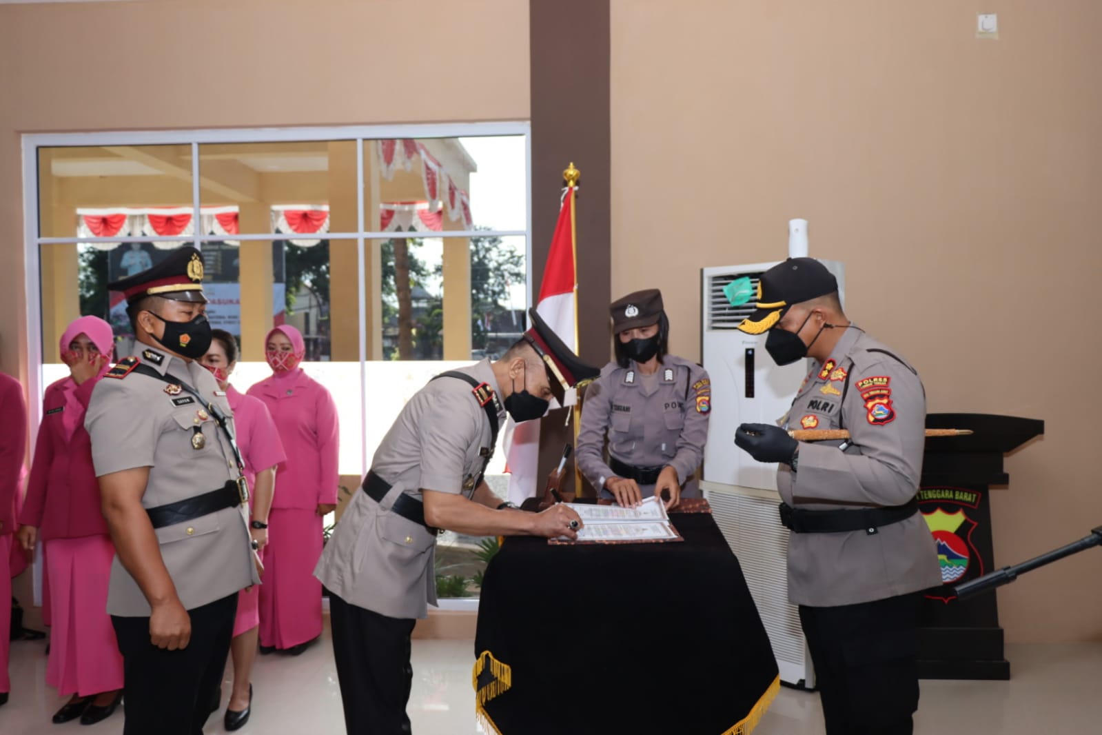 Pengambilan Sumpah Jabatan dipimpin langsung oleh Kapolres Lombok Tengah yang dilanjutkan dengan penandatanganan Fakta integritas oleh pejabat yang melaksanakan Serah terima Jabatan.