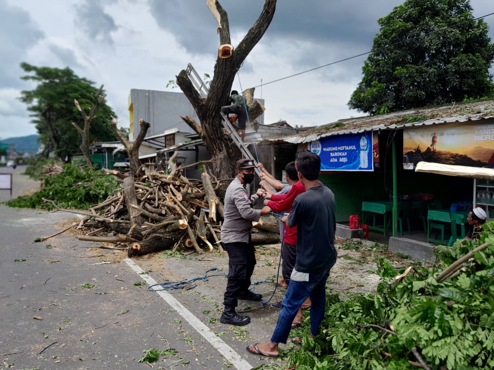 “Sehingga kami juga menurunkan personel guna membantu mempercepat proses pemangkasan pohon ini, di Wilayah Hukum Polsek Gerung. Guna mencegah kejadian serupa terualang Kembali,” katanya.
