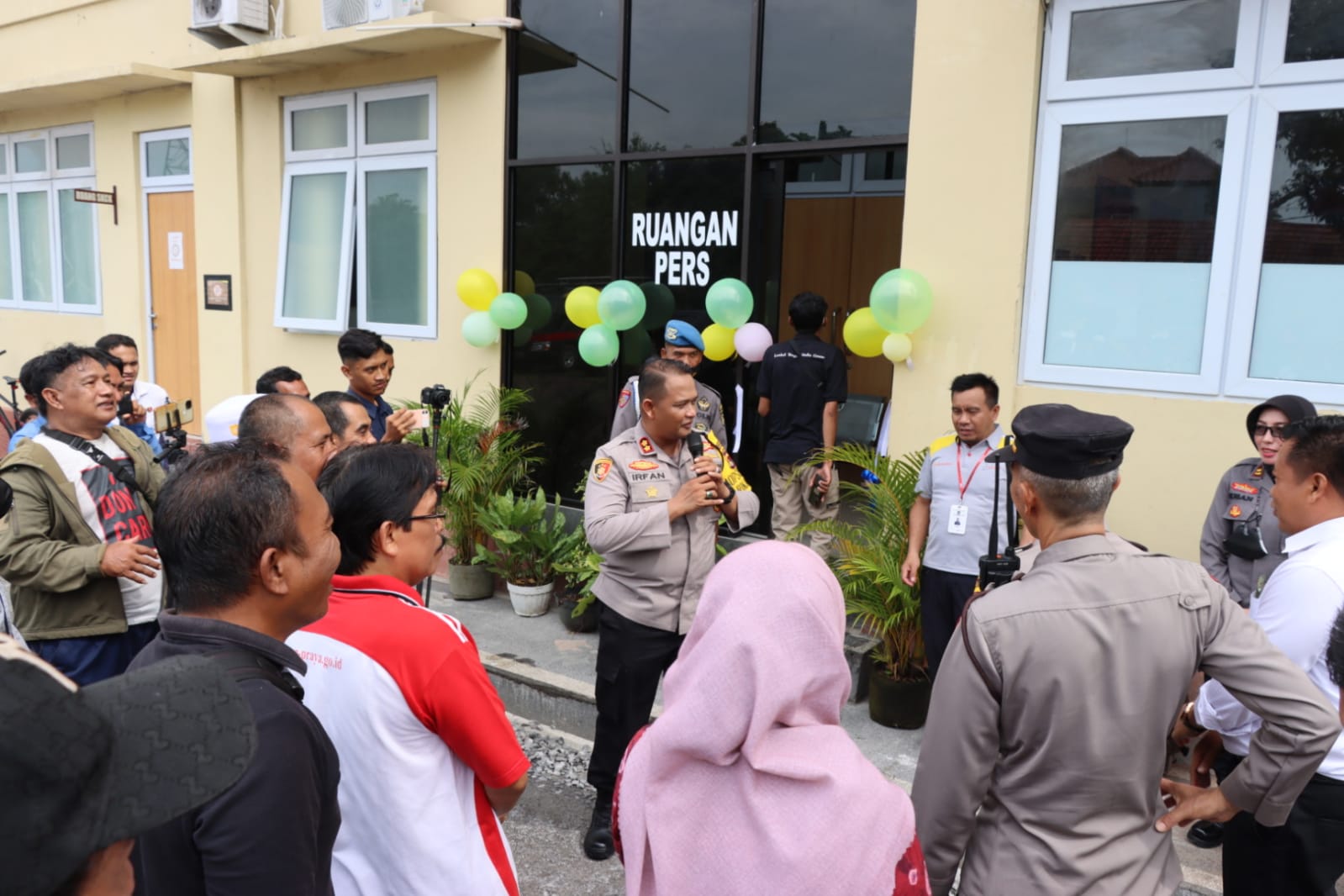 “Sebelumnya kami mohon maaf kalau ruang pers ini belum sempurna, namun hal ini kami lakukan sebagai bentuk nyata dalam mendukung tugas teman-teman Wartawan,” kata AKBP Irfan, di Praya.