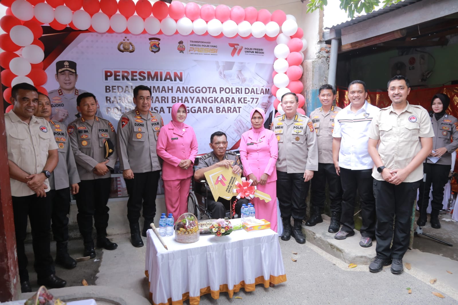 Rabu (28/6/2023) Kapolda NTB Irjen Pol Djoko Poerwanto bersama sejumlah PJU, TNI dan sejumlah SKPD datang menyaksikan dan meresmikan hasil bedah rumah yang dilaksanakan oleh anggotanya sejak beberapa minggu lalu.