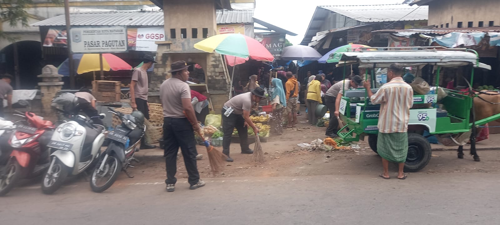 Kapolresta Mataram melalui Kapolsek Mataram Kompol Tauhid SH mengatakan bahwa hari hari kami Polsek Mataram berinisiatif dengan membersihkan sampah dengan cara menyapu serta mengumpulkan sampah yang bertebaran di sekitar areal pasar Pagutan.