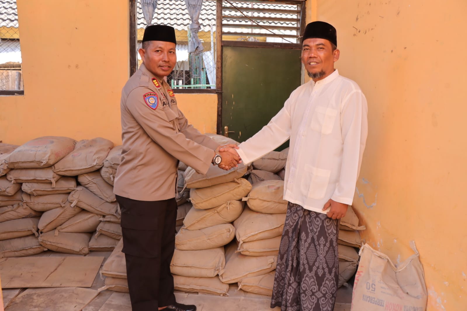 Disamping itu pada kesempatan terakhir Polresta Mataram menyerahkan tali asih berupa 30 sak semen yang diterima langsung oleh pengurus Masjid setempat.