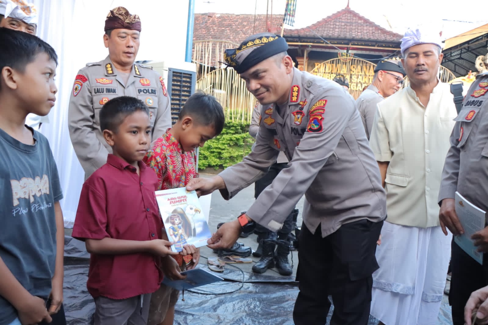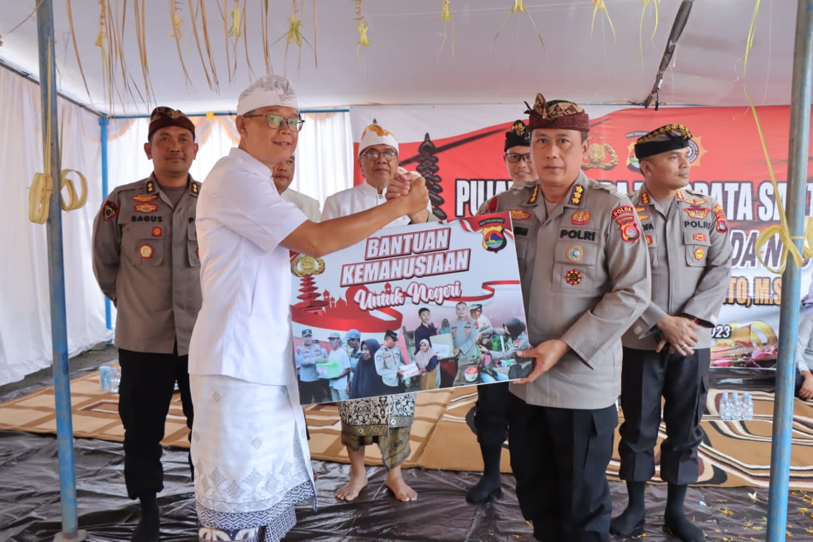 Acara Pujawali Pure Tri Brata Sakti dan Simakrame IKBH Polresta Mataram dirangkaikan dengan kegiatan Bakti sosial (Baksos) berupa penyerahan Bantuan Sosial (Bansos) kepada masyarakat penerima manfaat berupa 30 sak semen kepada Pure Jagad Nata Sangkareang , 50 paket sembako kepada masyarakat penerima manfaat, serta 2 buah Kursi roda yang diserahkan langsung oleh perwakilan Kapolda NTB dan Kapolresta Mataram kepada 2 warga masyarakat penderita lumpuh.