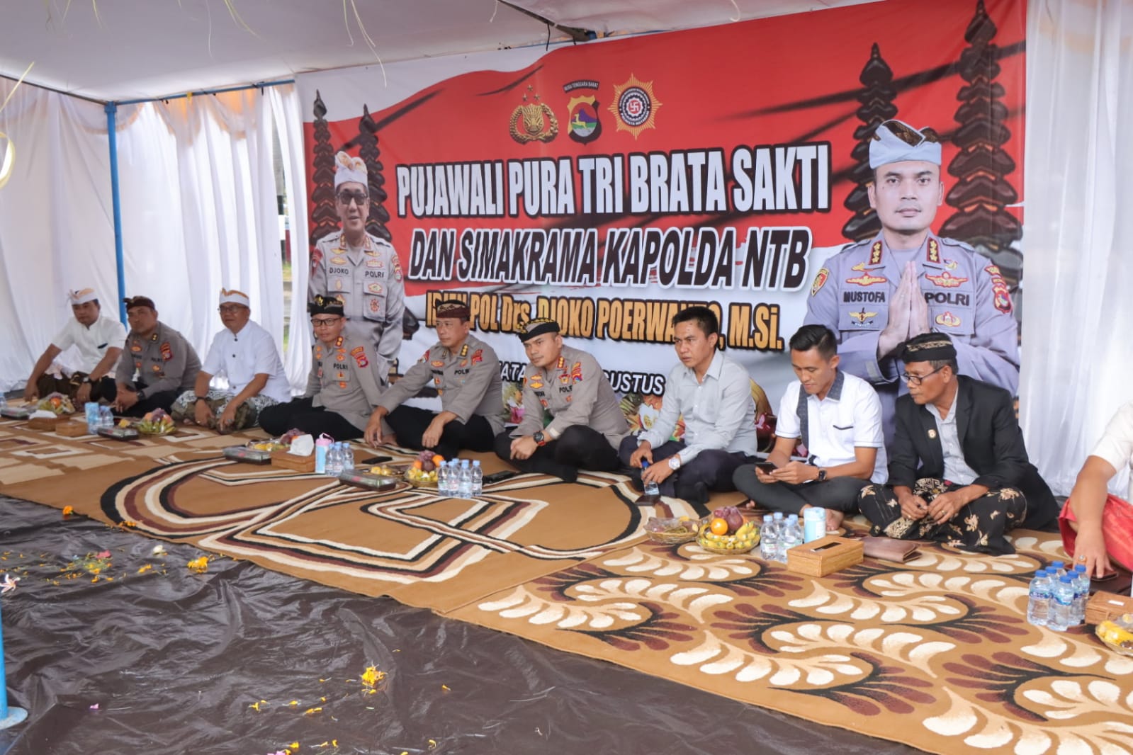 Hukrimntb.com | Mataram NTB – Kapolresta Mataram menghadiri kegiatan Silaturahmi dengan seluruh Keluarga besar Umat Hindu Polresta Mataram Dalam rangka Hari Ulang Tahun (Pujawali) Pure Tri Brata Sakti dan Simakrame Kapolda NTB bersama segenap Ikatan Keluarga Besar Hindu (IKBH) Polresta Mataram yang berlangsung di Pure Tri Brata Sakti Mapolsek Sandubaya, Kota Mataram, (31/08/2023).