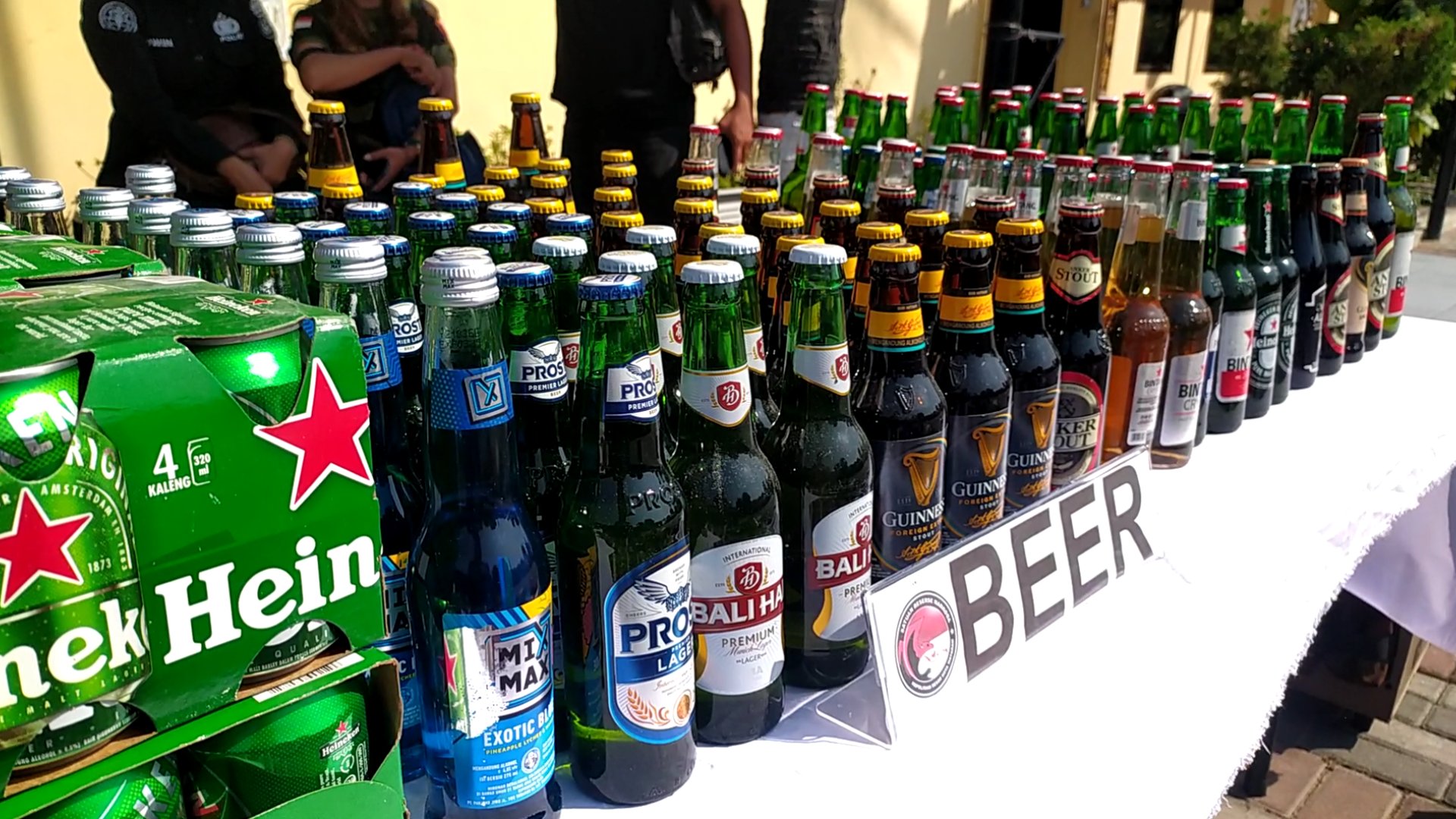 “Jumlah total miras ini adalah 1.920 (satu ribu sembilan ratus dua puluh) botol. Dan dari 1.920 botol miras ini diperkirakan harganya mencapai Rp 108.595.000 (seratus delapan juta lima ratus sembilan puluh lima ribu rupiah)”, katanya.