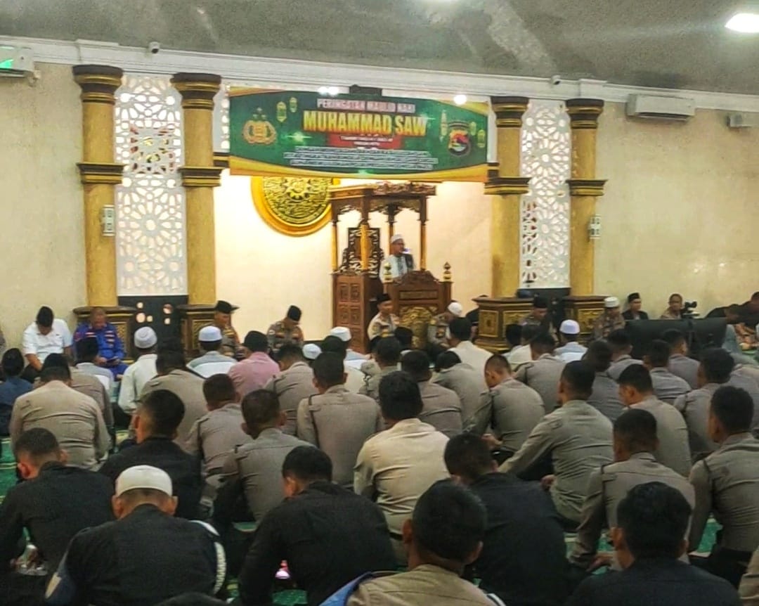 Hukrimntb.com | Mataram – Kepolisian Daerah Nusa Tenggara Barat (Polda NTB) menggelar acara Maulid Nabi Besar Muhammad SAW di Masjid Baitussalam Polda NTB Kamis (5/9/2023).