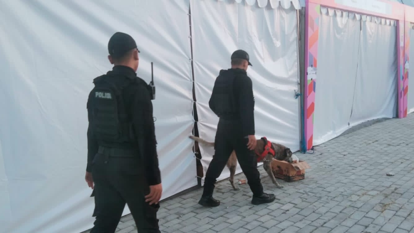“Kami sudah di sini sejak tiga hari yang lalu untuk melakukan sterilisasi lokasi menggunakan kemampuan anjing pelacak yang kami miliki,” ucapnya.