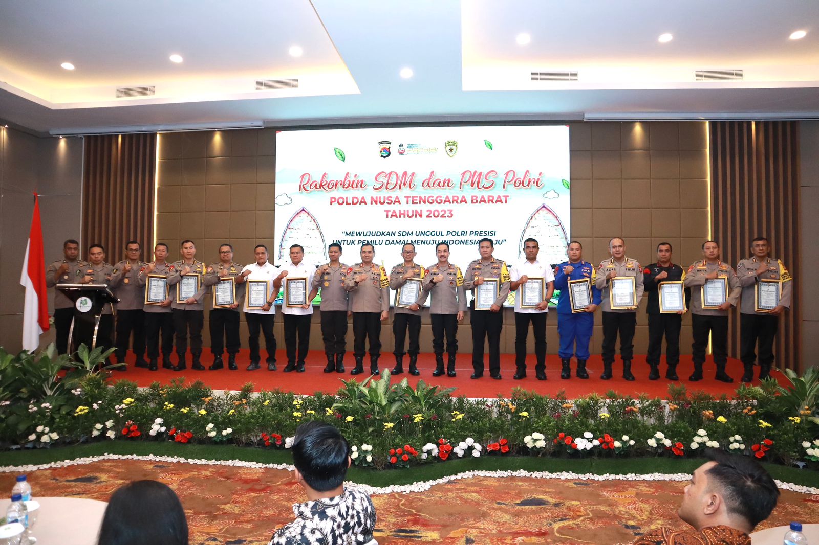 Usai membuka rakorbin SDM Kapolda NTB juga memberikan penghargaan kepada beberapa PJU Polda NTB yang berprestasi berikut daftar PJU yang menerima Penghargaan :