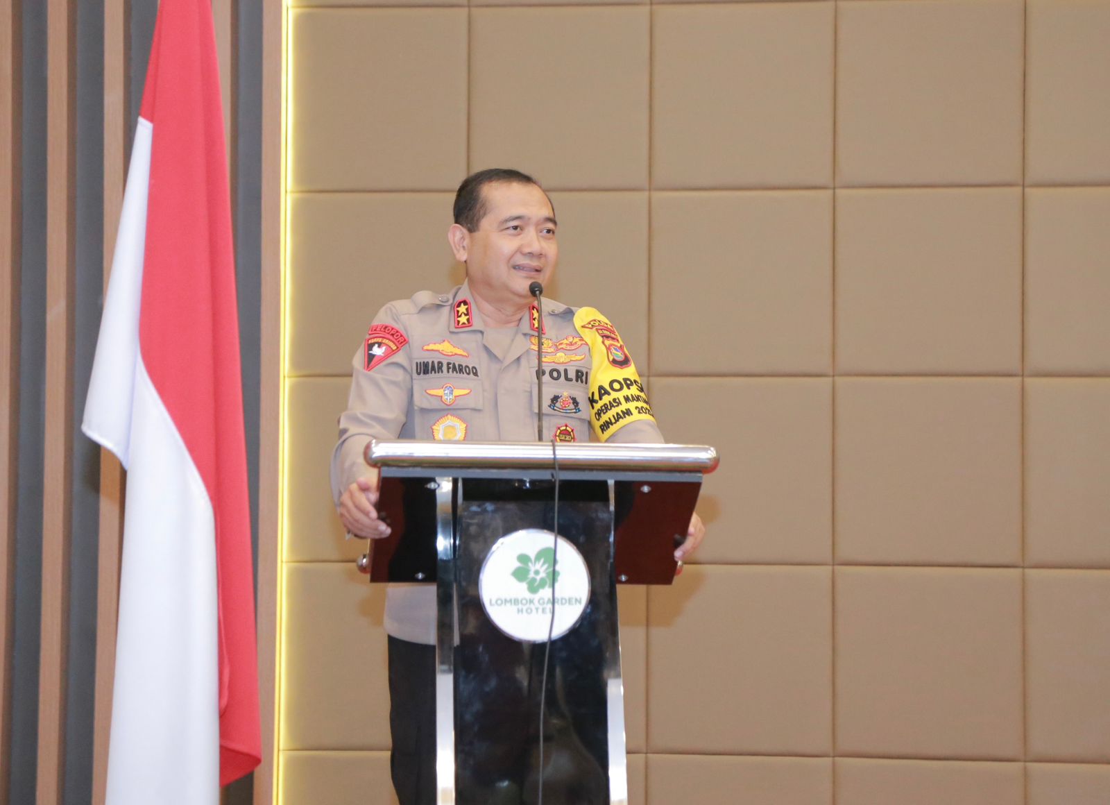Rakorbin yang mengusung tema “Mewujudkan SDM Unggul Polri Presisi Untuk Pemilu Damai Menuju Indonesia Maju” ini digelar di Ballroom Hotel Lombok Garden Mataram, Kamis (23/11/2023).