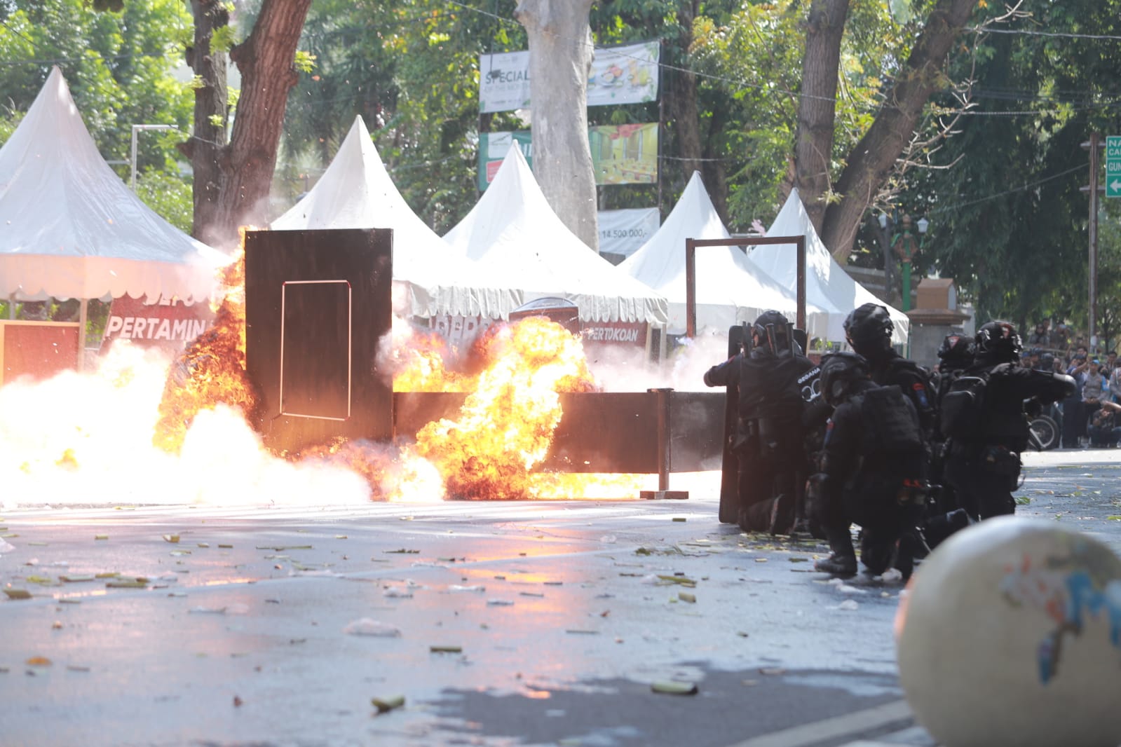 “Seperti yang kita saksikan bersama bahwa tindakan tegas terukur akan dilakukan bilamana situasi sudah dalam kategori zona merah atau sudah anarkis dan telah melanggar ketentuan,”ucapnya.