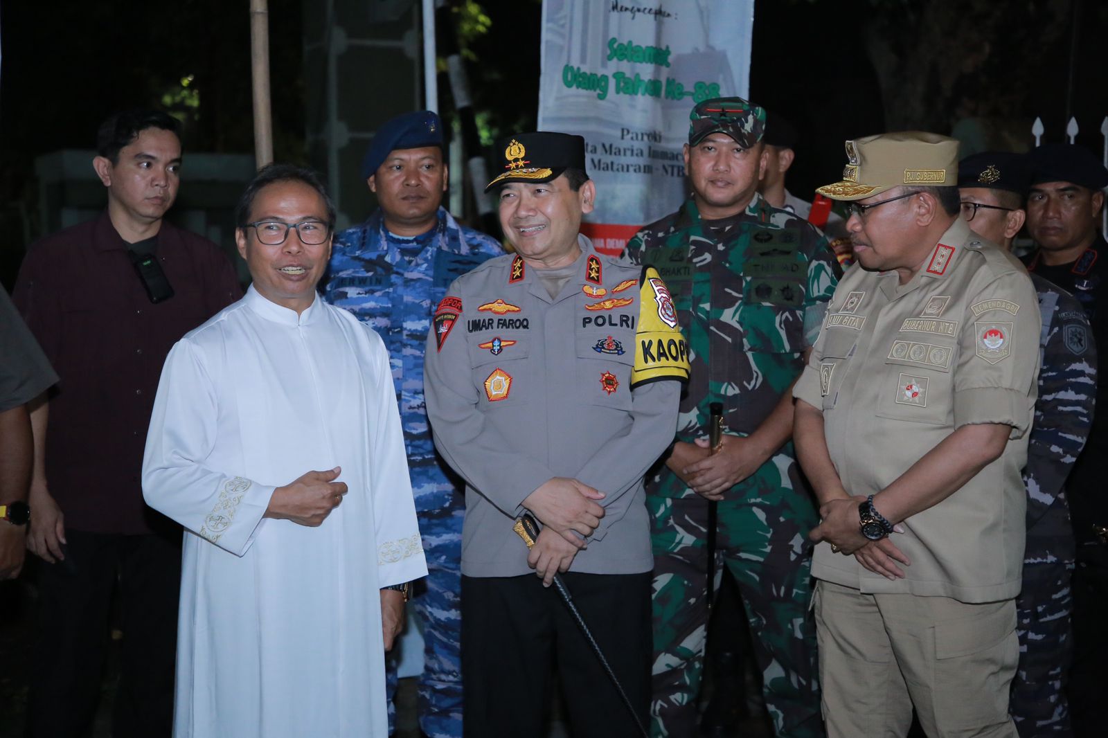 Pada kesempatan itu Kapolda NTB bersama PJ Gubernur NTB H Lalu Gita Ariadi menjumpai tokoh agama dan umat kristiani yang tengah merayakan natal.