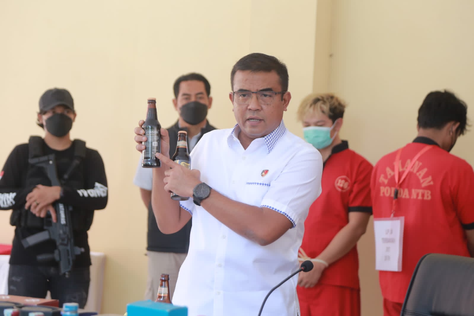 “AHEP terlibat dalam penjualan minuman beralkohol tanpa izin, melakukan penggantian label botol yang sudah kadaluarsa dengan tujuan untuk dijual kembali ke kafe di daerah Senggigi,” jelasnya.