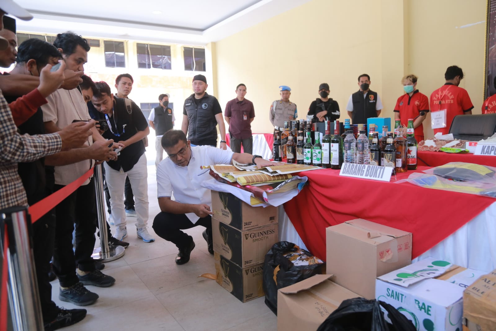 Disebutkan, dari tangan AHEP petugas berhasil menyita 8.757 botol minuman beralkohol beserta barang bukti lainnya, termasuk laptop, Handphone dan kendaraan pengangkut.