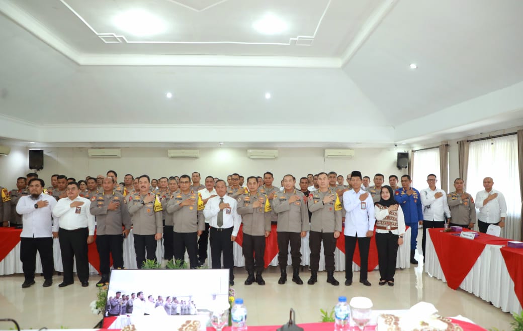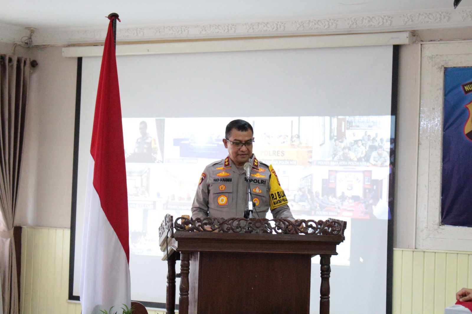 Acara tersebut dipimpin langsung Kapolda NTB Irjen Pol. Hadi Gunawan SIK., dan dihadiri Wakapolda NTB, Irwasda Polda NTB, Segenap PJU Polda NTB, Kapolres/ta jajaran Polda NTB, Perwakilan Pamen dari masing-masing Satker serta diikuti secara daring oleh seluruh Polres jajaran di masing-masing wilayah.