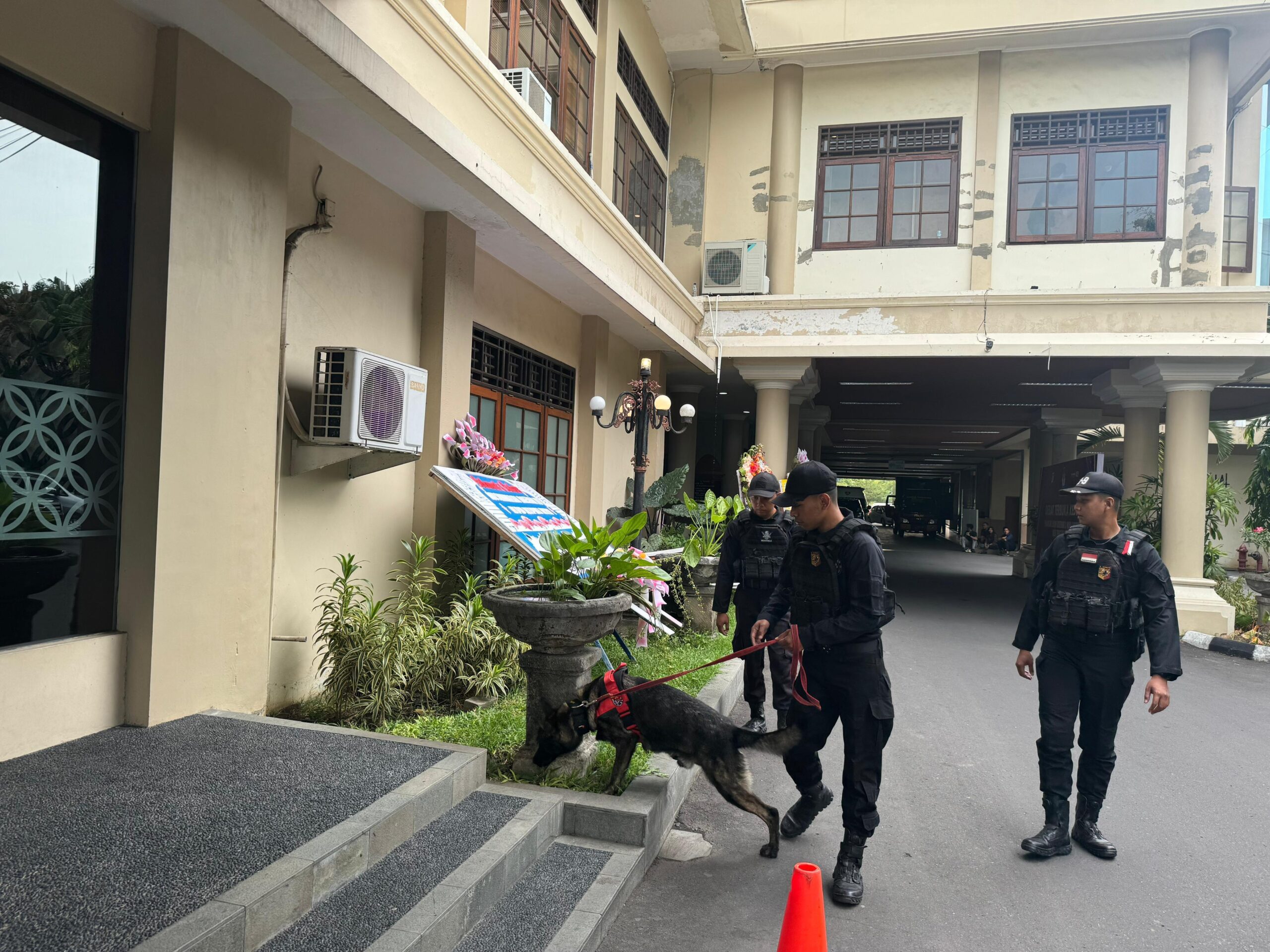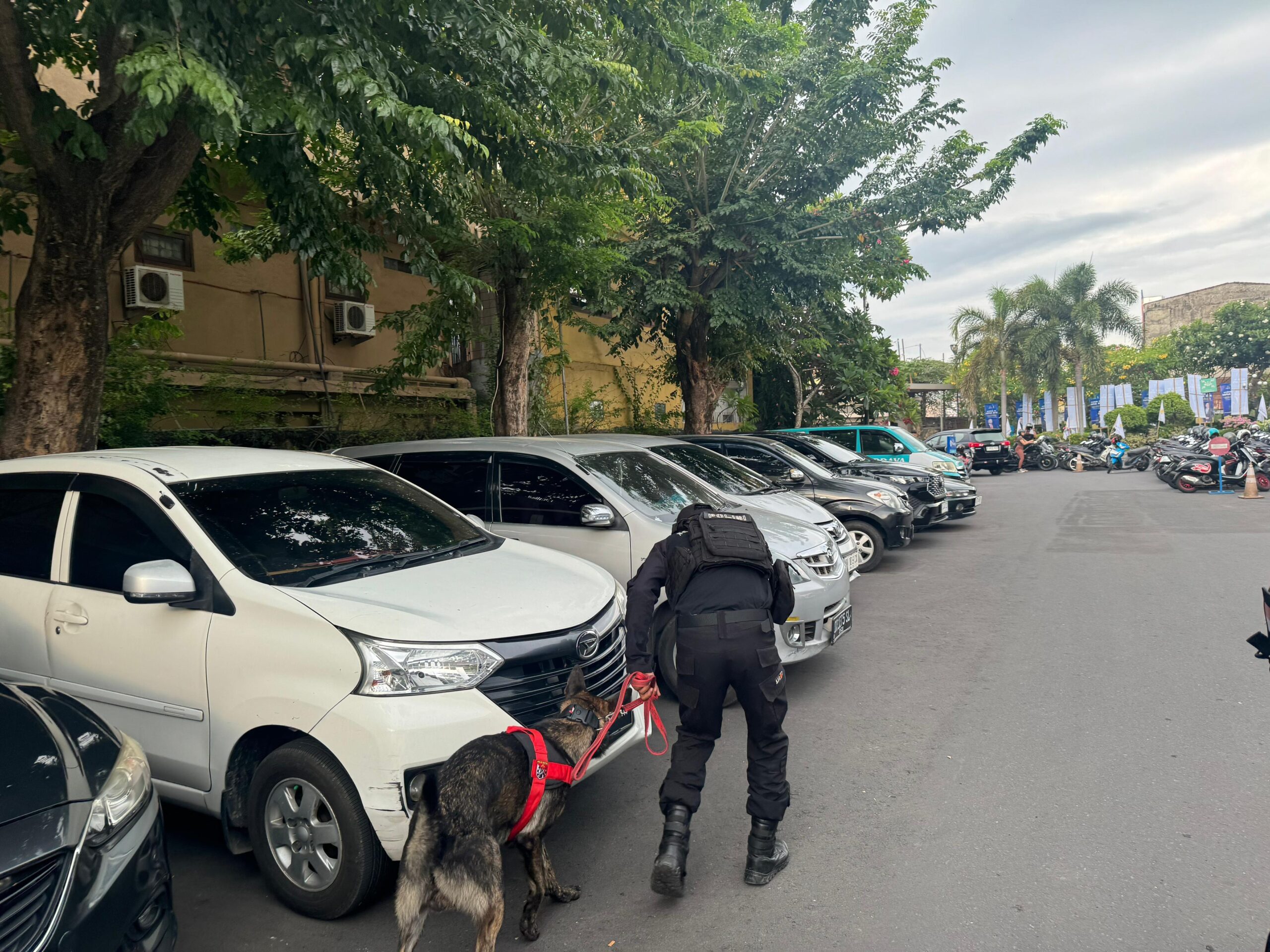 Dengan Menerjunkan Anjing Pelacak dari unit K9 Dit Samapta Polda NTB areal / Lokasi Debat Kedua di sterilkan dari berbagai jenis Bahan-bahan berbahaya.