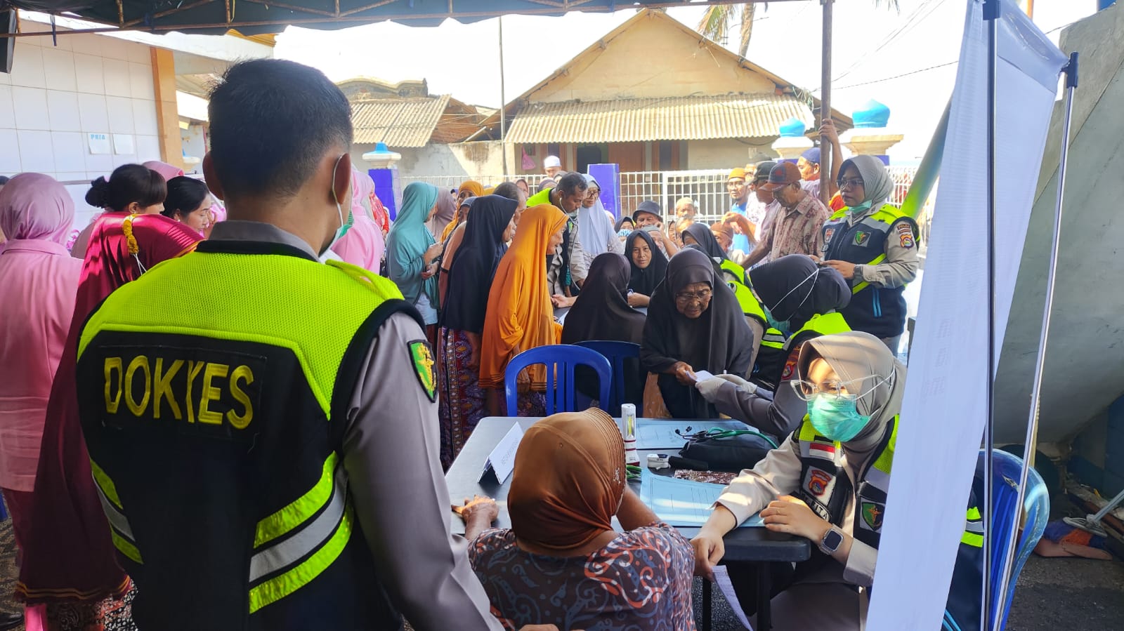 Dalam kegiatan tersebut, tim medis dari Biddokkes Polda NTB memberikan berbagai layanan kesehatan seperti pemeriksaan tekanan darah, konsultasi medis, serta edukasi kesehatan kepada masyarakat, khususnya bagi warga yang kurang mampu.